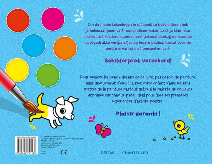 Om de mooie tekeningen in dit boek te beschilderen heb je helemaal geen verf nodig, alleen water! Laat je kind naar hartenlust kliederen zonder veel geknoei dankzij de handige voorgedrukte verfpaletjes op iedere pagina. Ideaal voor de eerste ervaring met penseel en verf.
