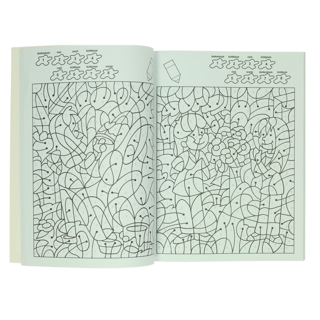 Dit geïllustreerde boek bevat maar liefst 128 fascinerende verrassingen voor alle kinderen vanaf 5 jaar die van kleuren houden. De nummers geven aan met welke kleuren elk veld moet worden ingevuld om aan het eind een heel schattig plaatje te krijgen: een hele lieve kat, een meisje te paard, een prachtig grasveld vol bloemen en nog veel meer grappige afbeeldingen. Een kleurboek vol verrassingen.