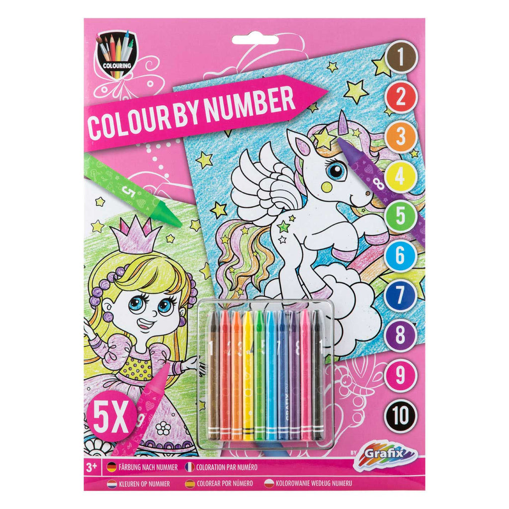 Kleuren op nummer met waskrijtjes. Voor heel kleur- en tekenplezier!
