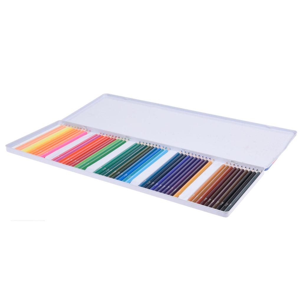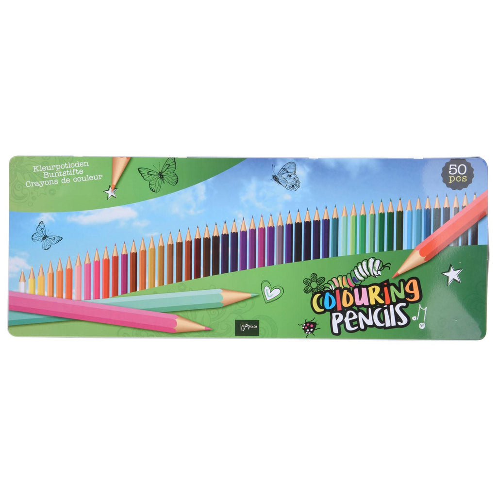 Blik met 50 kleurpotloden. Geschikt voor kinderen vanaf 3 jaar oud.