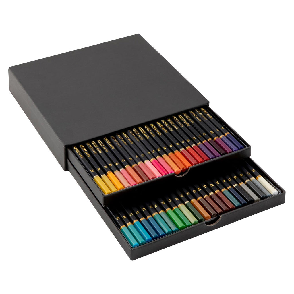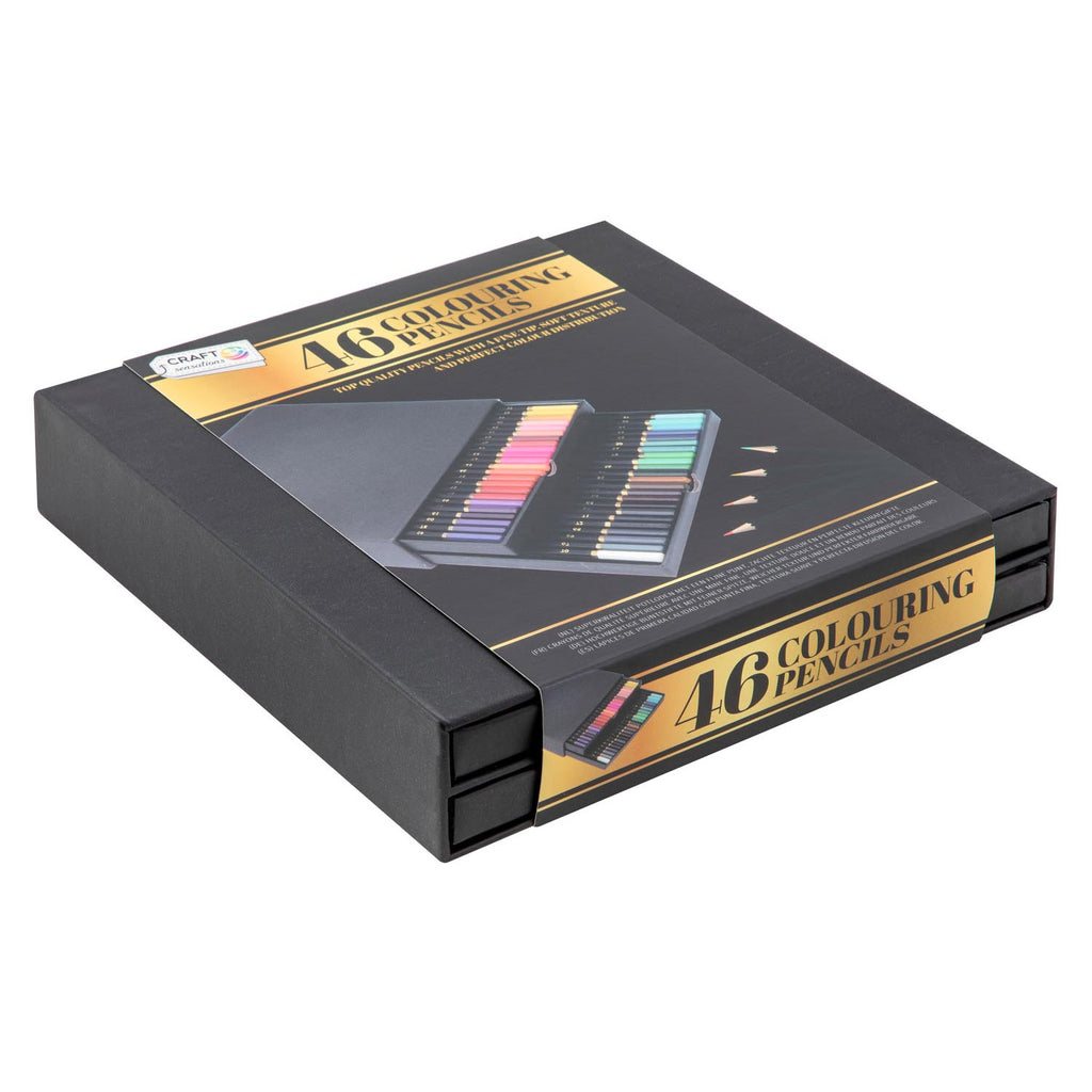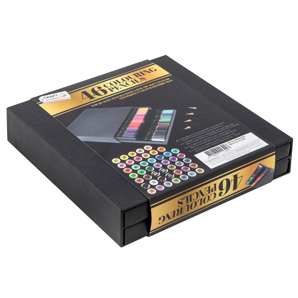 Kleurpotloden in opbergbox met laatjes, 46 stuks.