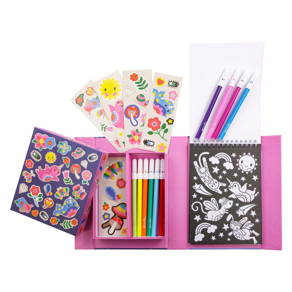 • Complete set: Bevat alles wat nodig is voor urenlang kleurplezier: stiften, stickers en kleurboekjes, allemaal handig verpakt voor creatieve uitspattingen thuis of onderweg.