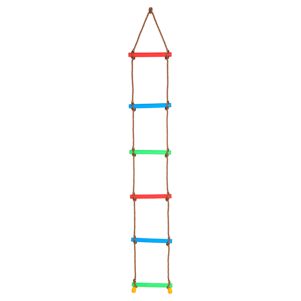 Klim helemaal omhoog in deze klimladder van maar liefst 2 meter lang! Dankzij de gekleurde tredes heeft de klimladder een vrolijke uitstraling. De ladder kan gebruikt worden als trap naar je geheime boomhut, of bevestig de ladder aan een klimtoestel om te oefenen met klimmen.