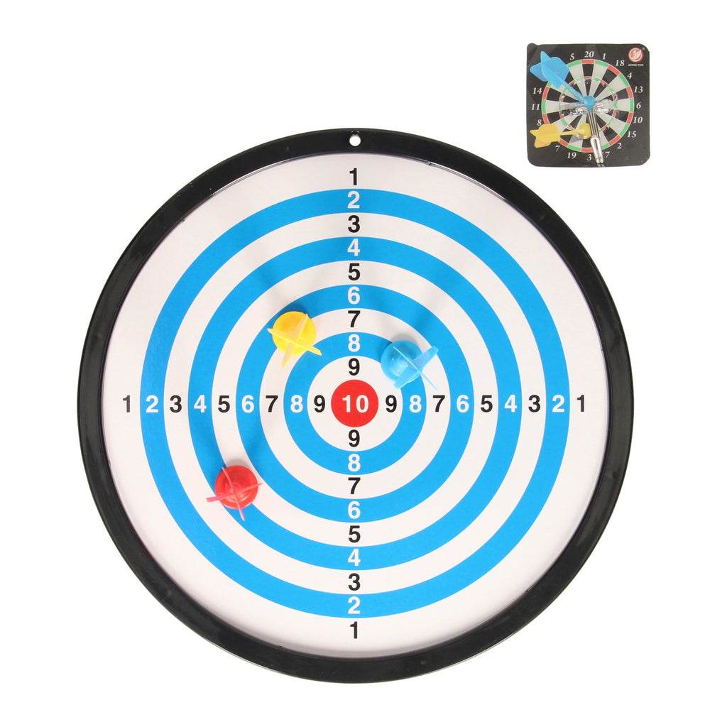 Magnetisch Dartset Dubbelzijdig met 3 pijlen. Het bord heeft een doorsnede van 26 centimeter.