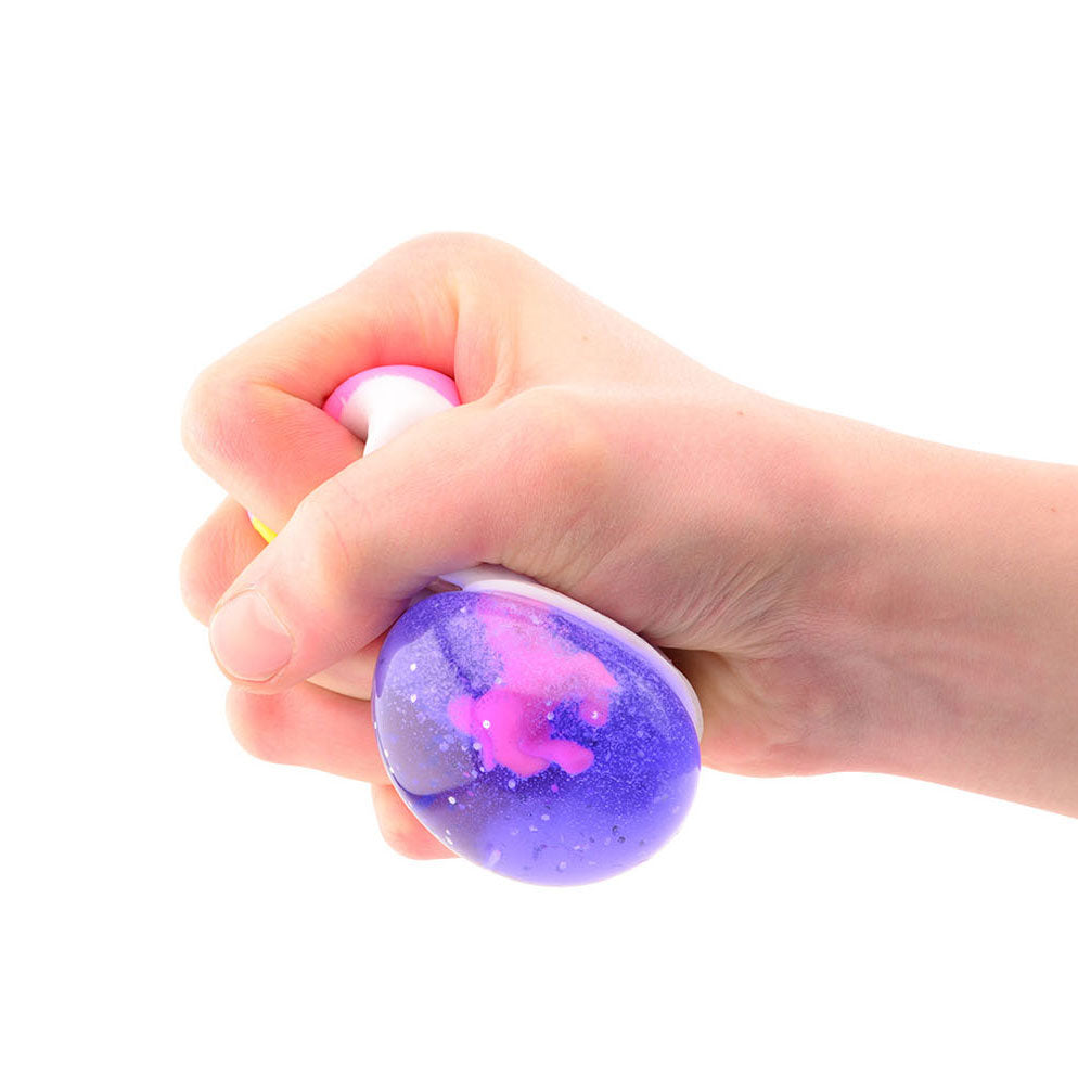 Als je in deze regenboog knijpt, staat je een verrassing te wachten! Uit de regenboog komt een magische bol tevoorschijn gevuld met glitters en een eenhoorn. De inhoud van de regenboog is zo mooi dat je er alsmaar in blijft knijpen.