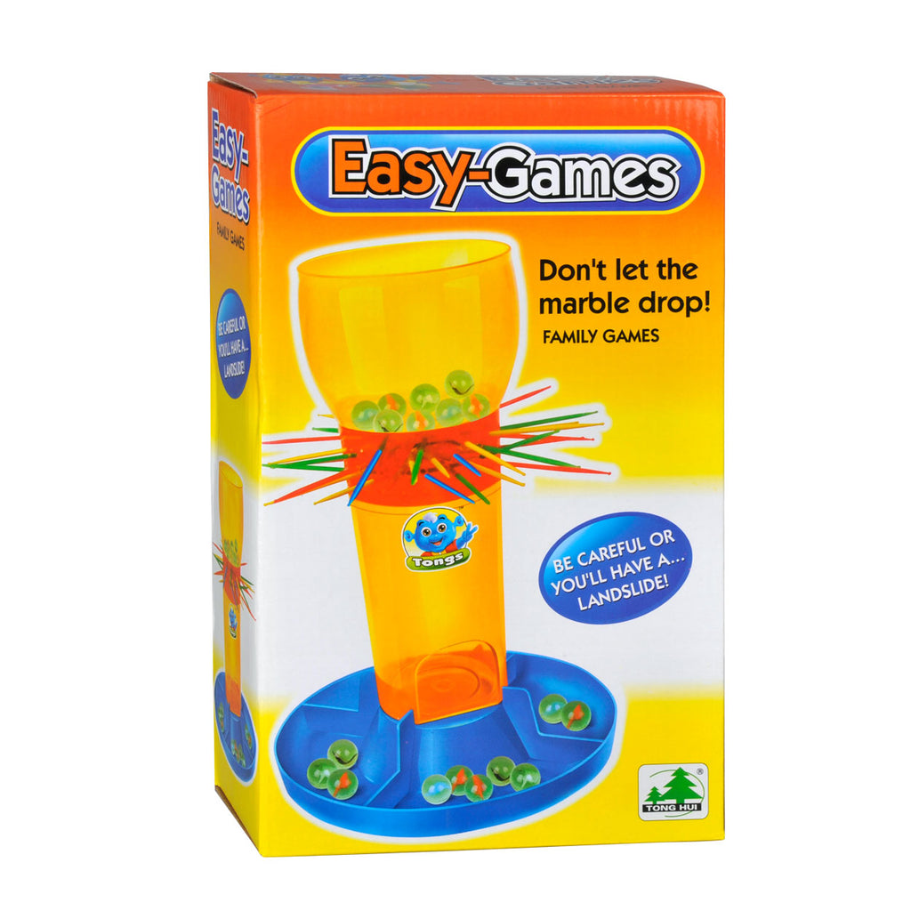 Steek de staafjes in de mikado pilaar en gooi de knikkers erin. Trek om beurten een staafje met overeenkomstige kleur gegooid met de kleurendobbelsteen uit de pilaar. Degene die het minste aantal knikkers uit het mikado spel heeft doen vallen is de winnaar!