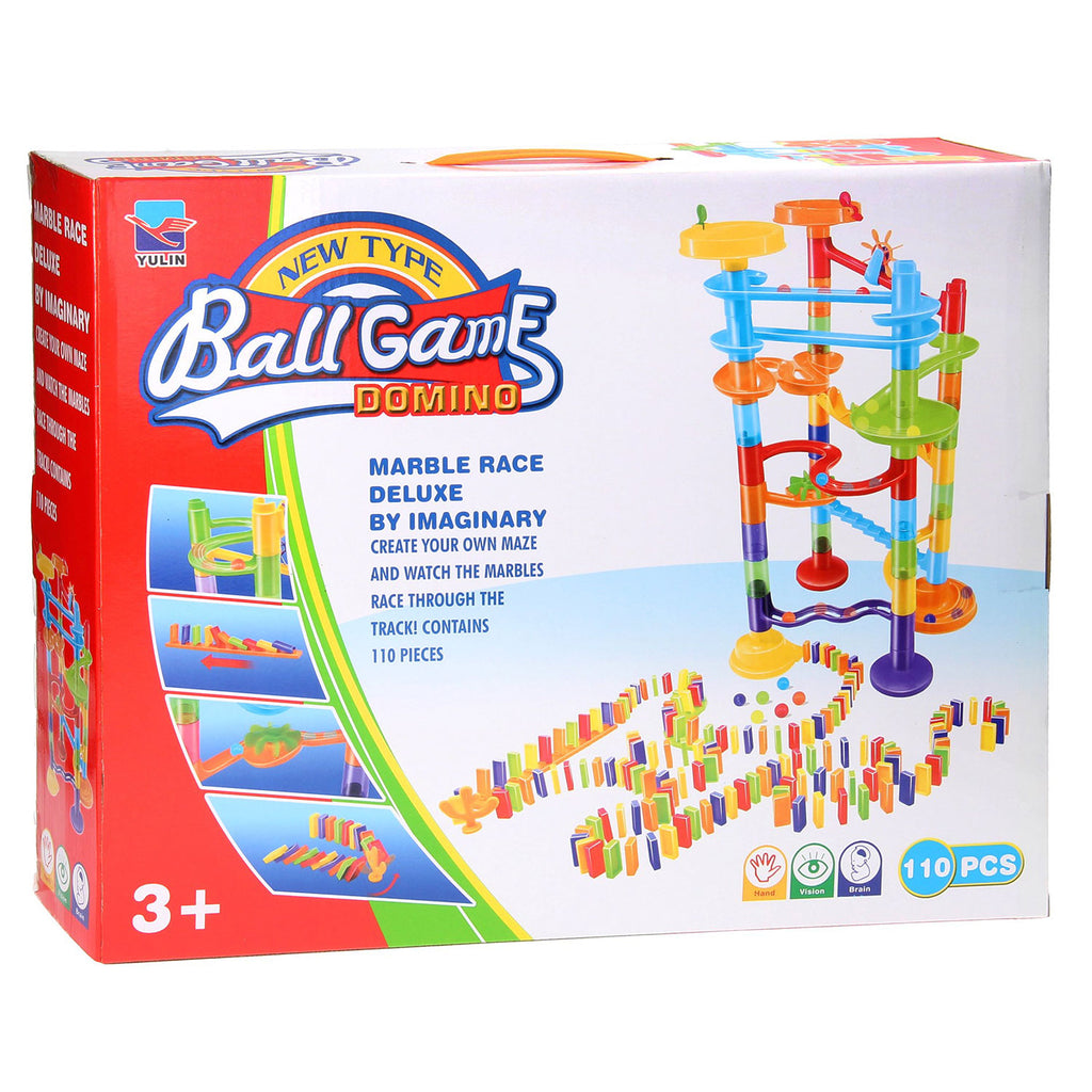Deze knikkerbaan zorgt voor eindeloos speelplezier! Bouw met 110 stukjes jouw eigen bouwwerk, zet de domino's neer en laat de knikkers in de baan rollen! Stimuleert de oog-hand coördinatie en wakkeren de creativiteit aan. Vanaf 3 jaar.