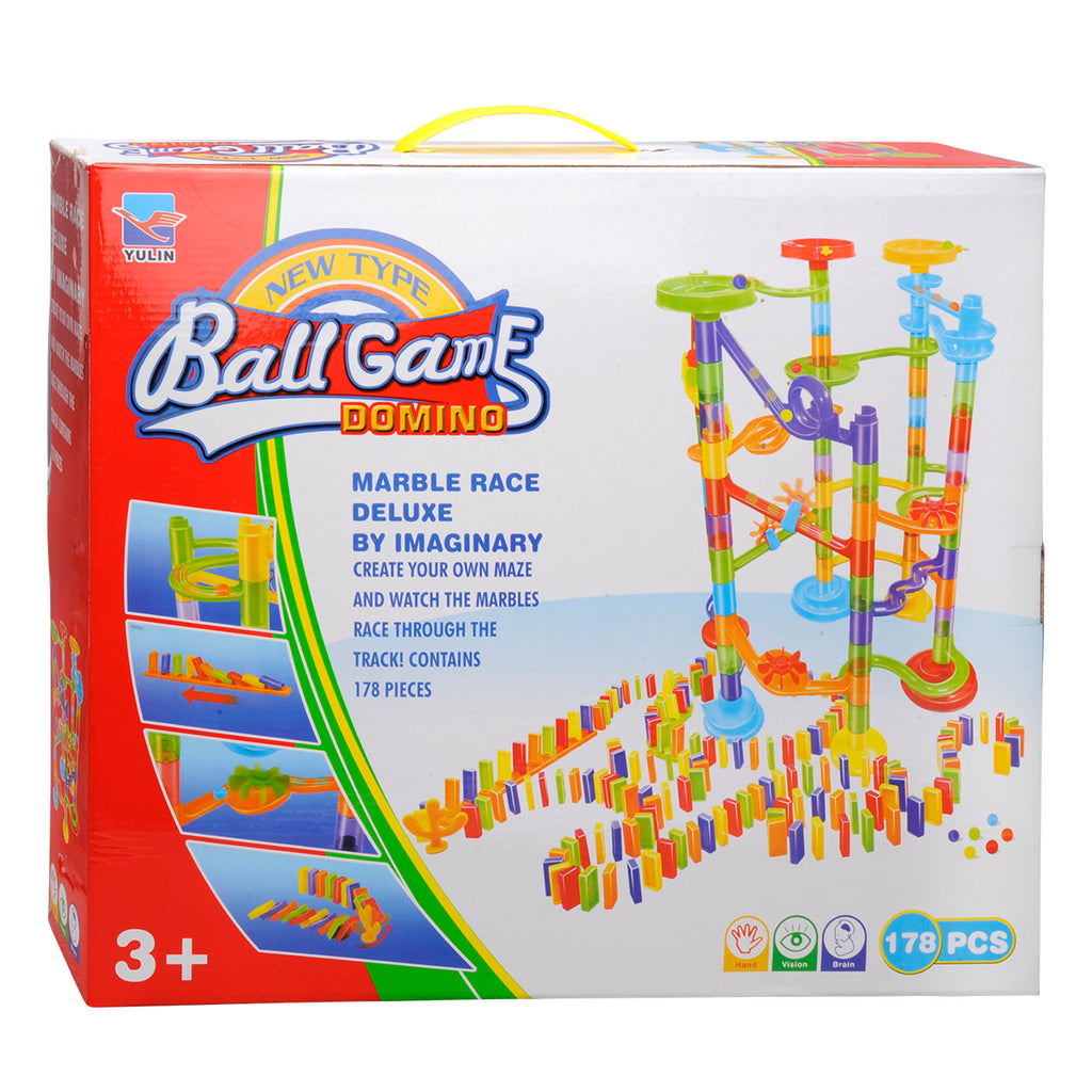 Bouw je eigen knikkerbaan! Zorg jij ervoor dat de dominostenen op de juiste manier omvallen, wanneer de knikkers rollen?