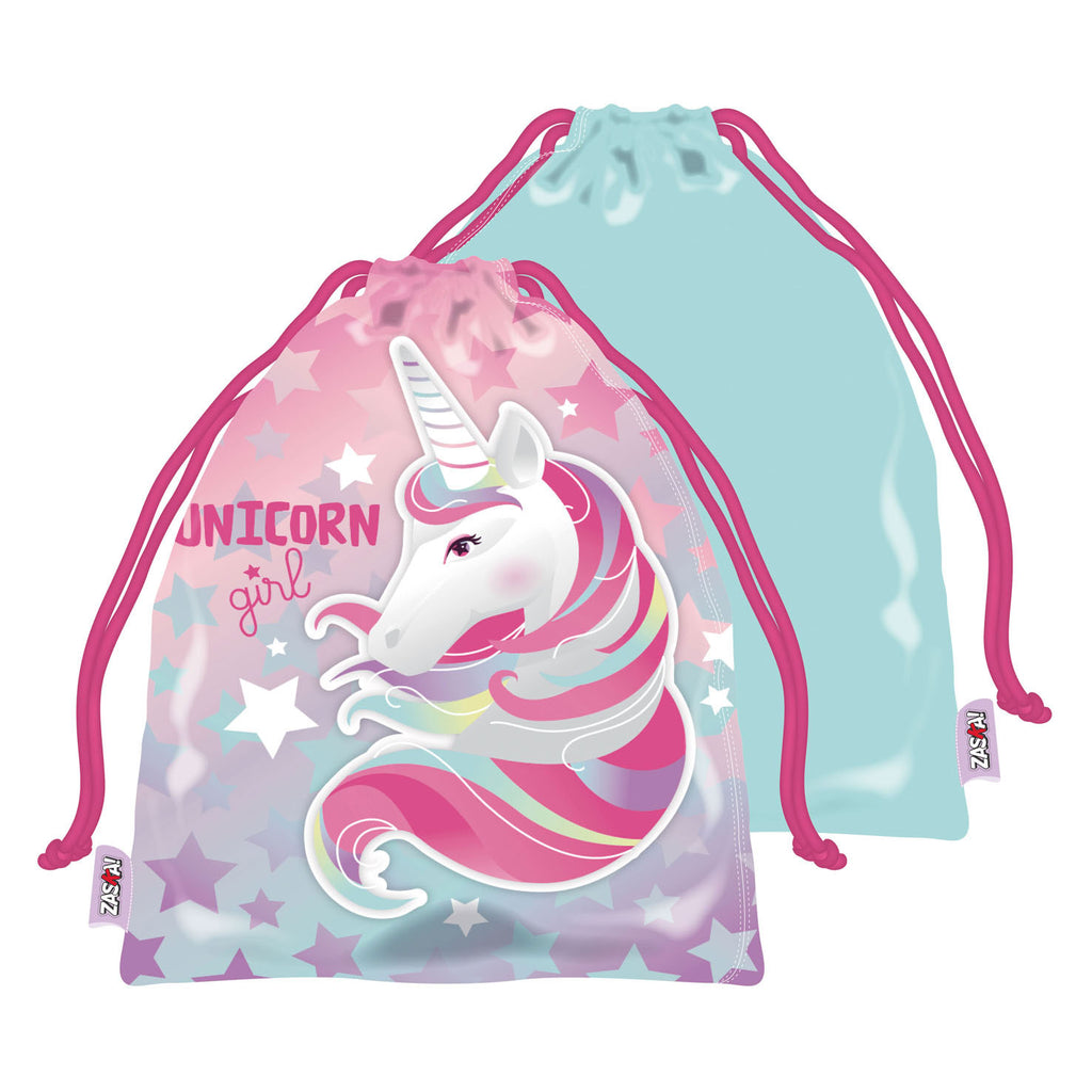 Knikkerzak van eenhoorn met formaat 26,5 bij 21,5 cm.