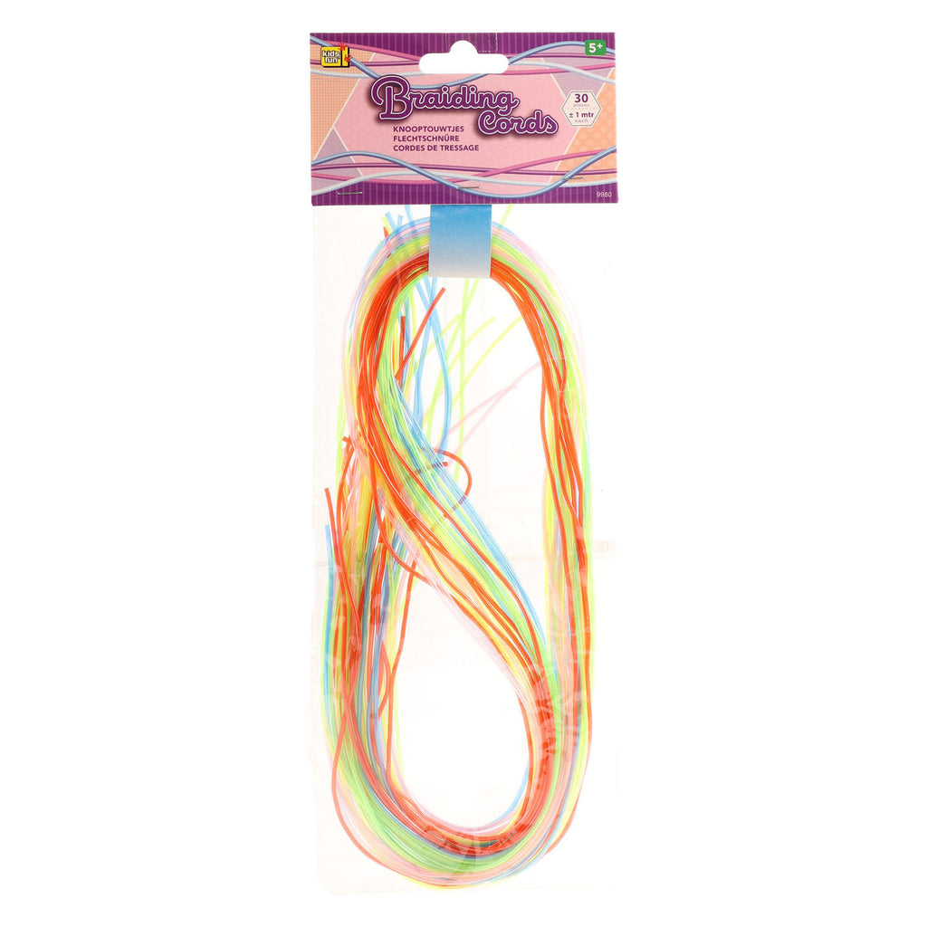Maak mooie creaties met deze knooptouwtjes in verschillende kleuren. Inhoud: 30 koordjes van ongeveer 1 meter lang. Geschikt voor kinderen vanaf 5 jaar oud.