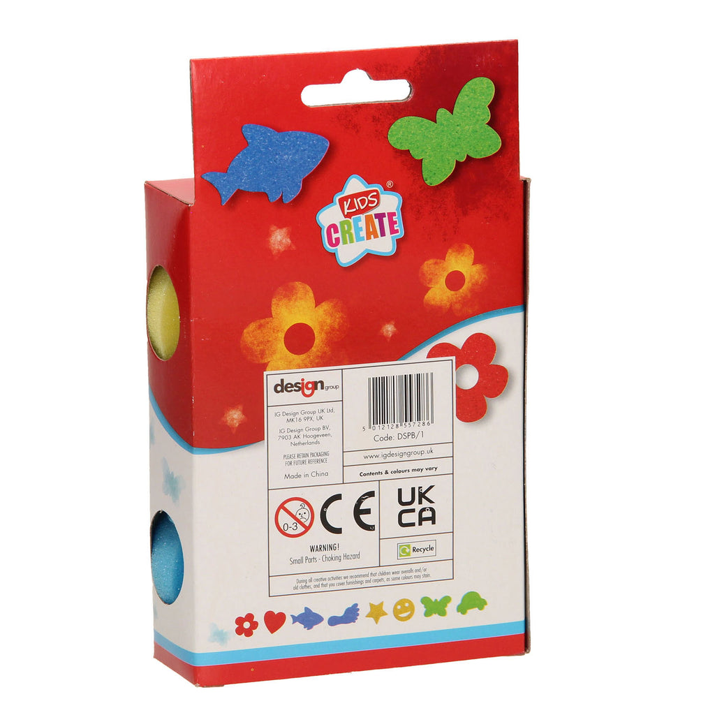 Set van 8 gekleurde sponsjes in verschillende vormen.