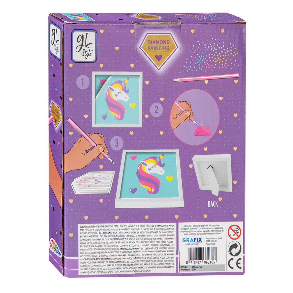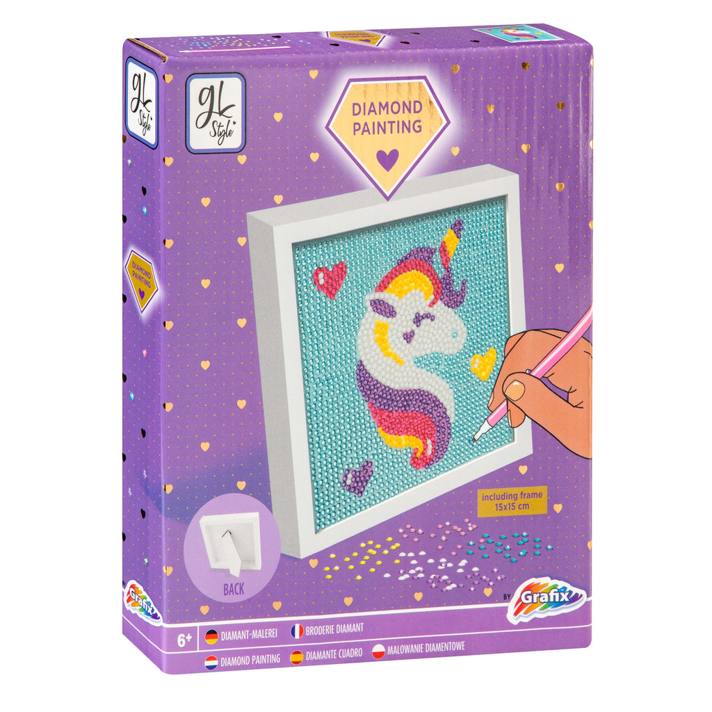 Knutselset Diamond Painting Eenhoorn. Inclusief lijstje van 15 x 15 centimeter.