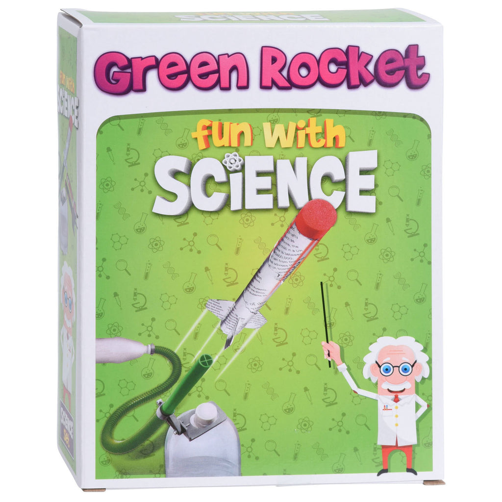 Knutselset Wetenschap Raket, 32dlg. Met de inhoud van deze doos, een tijdschrift of krant en twee plastic flessen bouw je binnen mum van tijd een lanceerbasis voor een papieren raket.