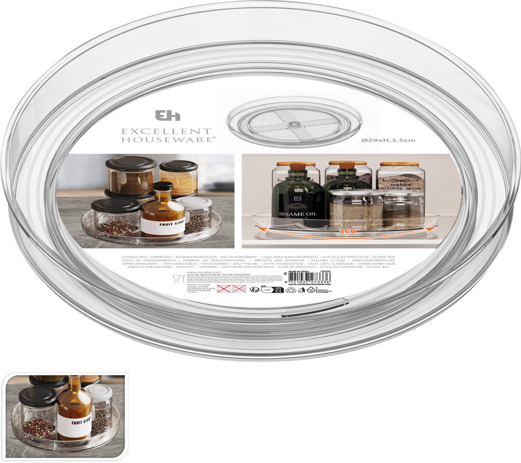Ronde opbergbak voor de koelkast met een diameter van 29 cm, kleur: transparant