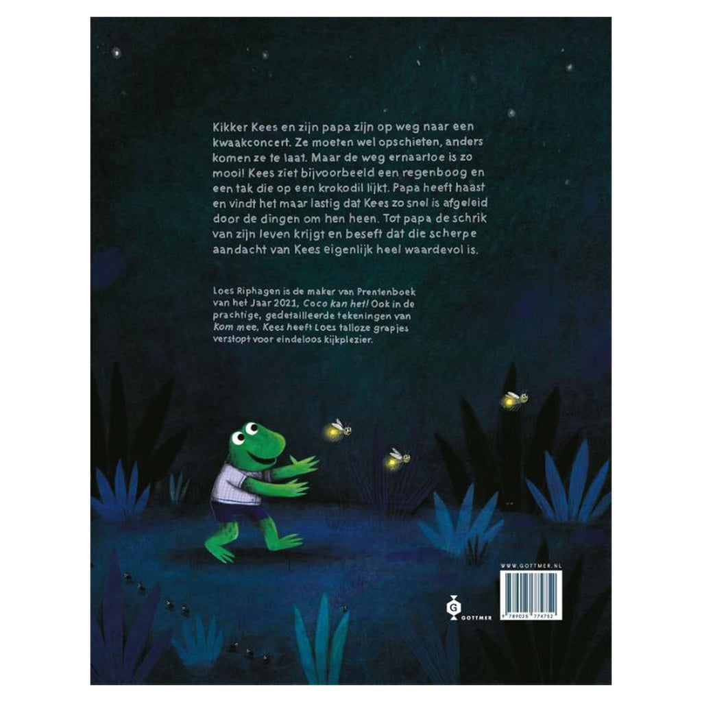 Kikker Kees en papa zijn op weg naar een kwaakconcert. Ze moeten wel doorlopen, anders komen ze te laat. Maar de weg ernaartoe is zo mooi! Kees ziet bijvoorbeeld een regenboog en een tak die op een krokodil lijkt. Maar Papa heeft haast en Kees is zo snel afgeleid... Dan ontdekt papa dat het juist heel leuk is om te letten op de mooie dingen om hen heen. Kom mee, Kees is echt een lust voor het oog. Elke grote plaat zit vol kleine grapjes waar lezertjes naar op zoek kunnen gaan. Alle mooie details zorgen voor eindeloos kijkplezier, net als bij Coco kan het!
