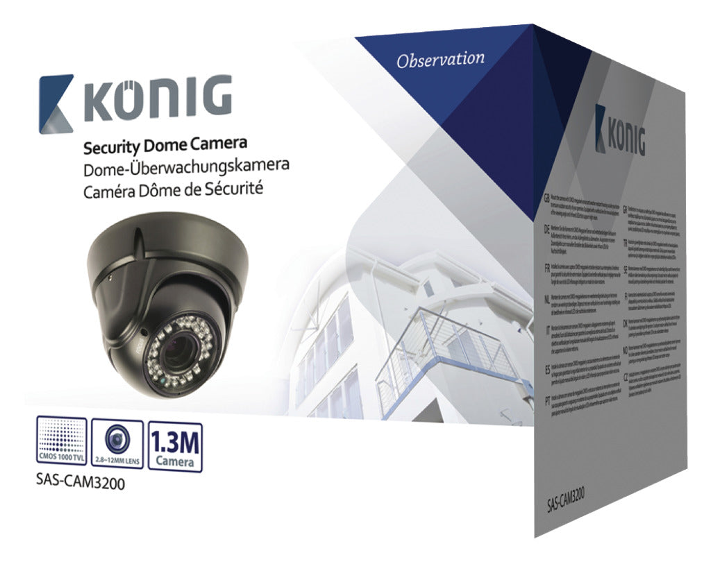 Monteer de 1 000 TVL-camera met CMOS-megapixelsensor en weerbestendige behuizing buitenshuis om het terrein rondom uw woning te beveiligen. Uitgerust met een varifocale lens voor handmatige instelling van de beeldhoek en infrarood LED's die nachtvisie ondersteunen.