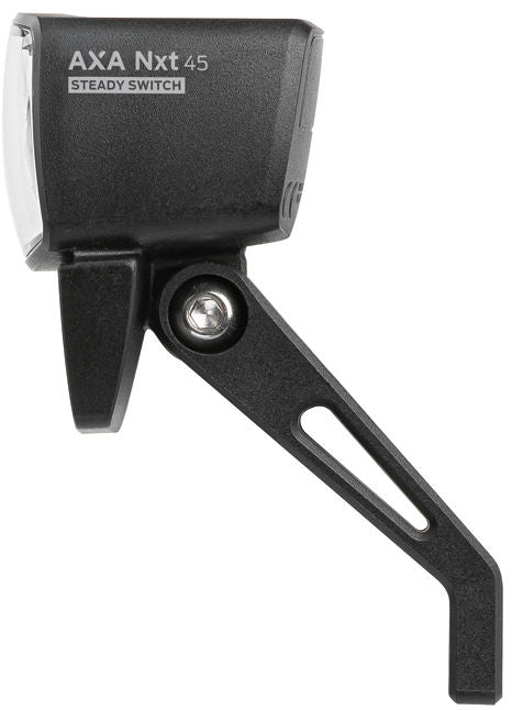 De AXA Nxt 45 is een dynamo voorlamp met een lichtopbrengst van 45 lux inclusief een Steady light functie. Dit houdt in dat de lamp nog 4 minuten brandt als je stil staat. Het voorlicht heeft een compact, vierkant ontwerp dat perfect past bij de geometrie van de fiets! De geïntegreerde reflector biedt extra veiligheid omdat je beter zichtbaar bent voor tegemoetkomend verkeer. De Nxt biedt een geweldige lichtverdeling. De near-field verlichting en brede licht bundel zorgen ervoor dat je goed zicht voor je hebt, maar ook 10 meter vooruit. Hij wordt geleverd met een beugel zodat je hem op de voorvork van de fiets kunt monteren. Hij past op alle standaard vorken. Deze beugel is te vervangen door een eenarmige aluminium stuurbeugel. LICHTBUNDEL: 65 meter zien , 3750 meter gezien worden . Safety description Voldoet aan de Duitse (StVZO) en Franse reglementen Geïntegreerde reflector voor betere zichtbaarheid Steady functie, 4 minuten licht bij stilstand Comfort description Compact, vierkant ontwerp Geweldige lichtverdeling door near-field verlichting en brede licht bundel Technical description 45 lux LED Dynamo bediend Voorvork- of stuur bracket Veiligheidsinformatie/b> Zien: 65 m