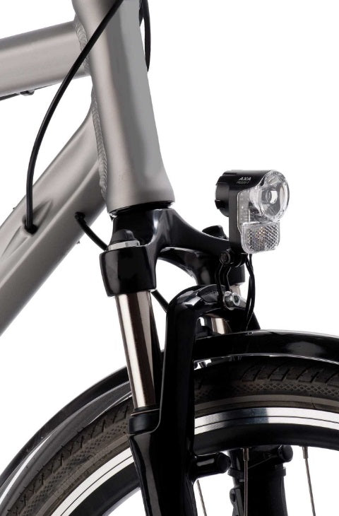 De AXA Pico30-T is een mini powerpakket met een lichtopbrengst van 30 lux. Het compacte en slanke design is een aanwinst op sportieve fietsen. De Pico30-T biedt een geïntegreerde retroreflector en dagrijverlichting. Beide functies zijn speciaal ontwikkeld om uw veiligheid te verhogen doordat u beter zichtbaar bent voor tegemoetkomend verkeer, niet alleen s avonds, maar ook overdag. De robuuste roestvaststalen beugel is geschikt voor elk wegtype, maar kan ook vervangen worden door een beugel voor semi-integratie met de meest voorkomende voorvorken. LICHTBUNDEL: 60 meter zien , 3500 meter gezien worden . VEILIGHEID High power 30 lux LED lamp, meer dan 50.000 uur levensduur Dagrijverlichting; 30 lux hoofdbundel s avonds, 10 lux hoofdbundel + 2 extra heldere veiligheids LED s overdag Clear lens technology, u bent ook van opzij zichtbaar voor ander verkeer; geïntegreerde retroreflector voor passieve veiligheid Steady functie; parkeerlicht, uw licht blijft nog 4 minuten branden terwijl u stilstaat Voldoet aan de Duitse (StVZO) en Franse reglementen COMFORT Ergonomische bedieningsknop Verkrijgbaar met aan/auto/uit schakelaar. Deze versie heeft een automatische licht/donker sensor die uw licht zelf aan- of uitschakelt. TECHNIEK Optimale lichtspreiding door special lenstechniek Compact, sportief design RVS beugel; andere montagebeugels voor semi-integratie leverbaar Geschikt voor gebruik met flankdynamo of naafdynamo
