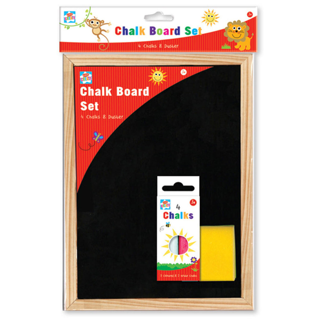 Dit krijtbord heeft een handig A4 formaat en kan dus overal mee naartoe worden genomen. Maak de mooiste tekeningen of leer schrijven op dit krijtbord. Inclusief 4 krijtjes en 1 bordenwisser.