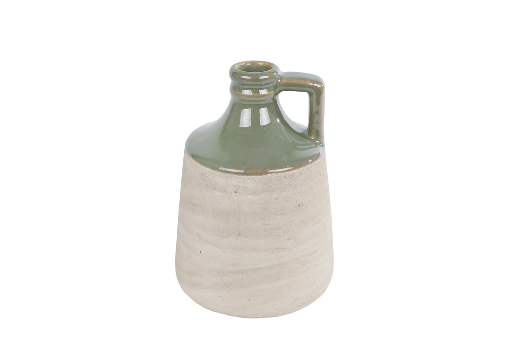 Kruik Nico S groen/naturel aardewerk 12x12x16cm
