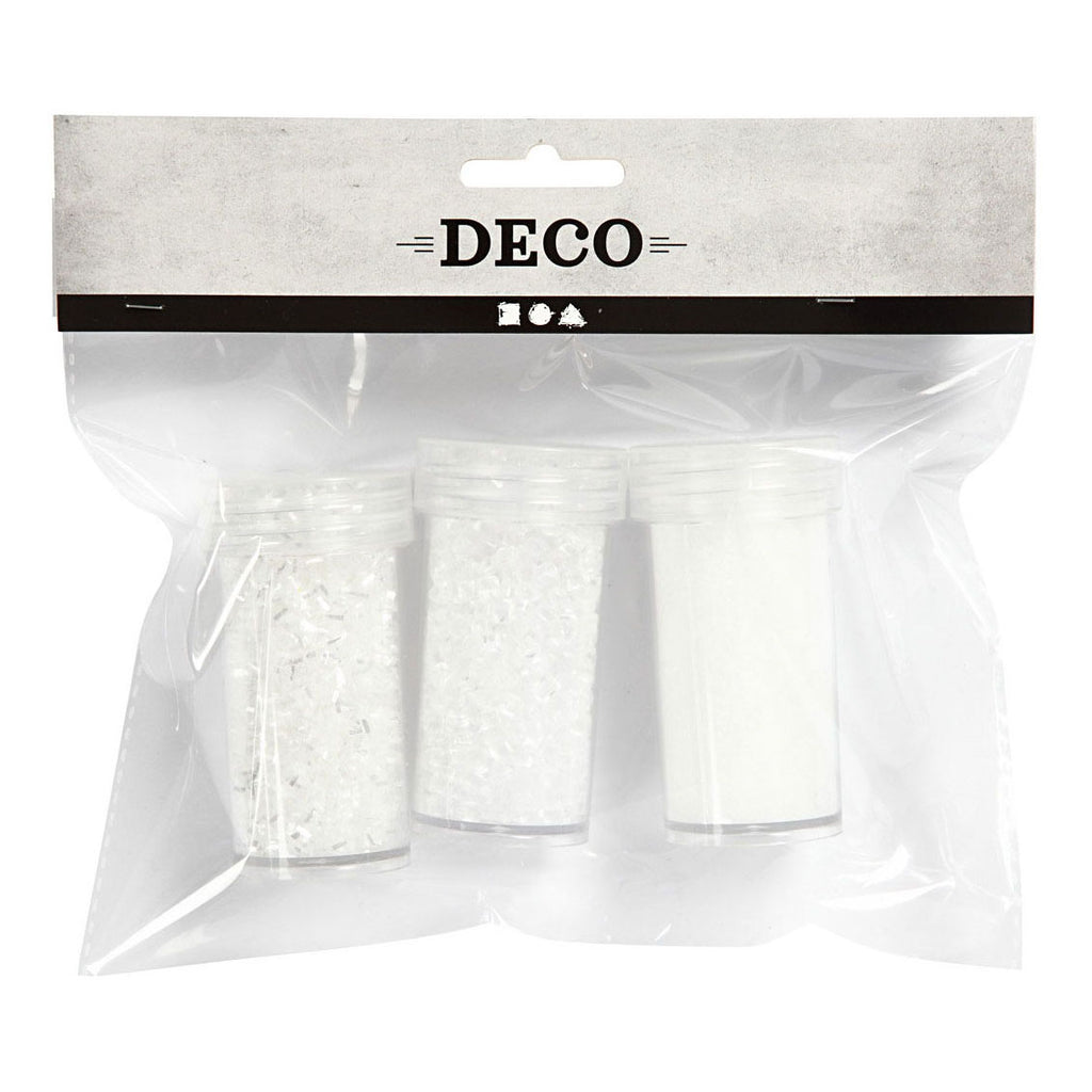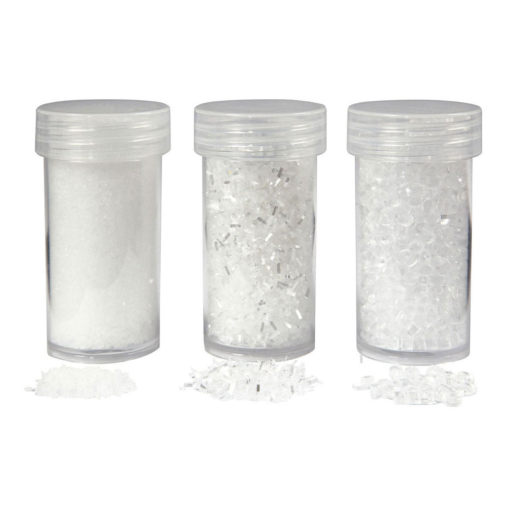 Een verscheidenheid aan vlokken / kunstmatige sneeuw die kan worden gemengd met Sticky Base of andere lijm en kan worden gebruikt voor decoratie.Afhankelijk van wat er wordt gedecoreerd, kan de decoratieve sneeuw worden verlijmd met hobbylijm, Sticky Base, multi-clearlijm enzovoort.