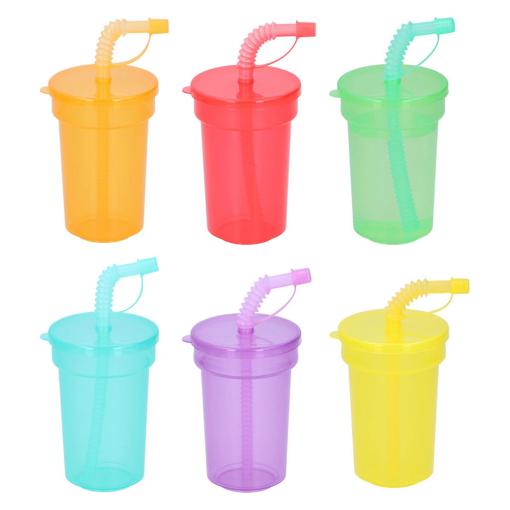 Kunststof drinkbeker met rietje in een set van 6. Inhoud: 387 ml