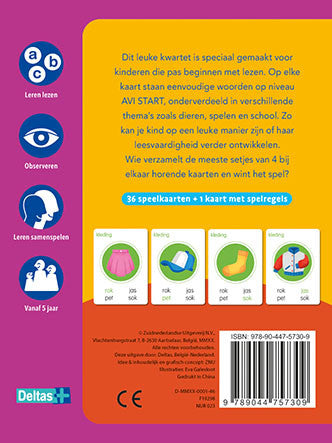 Kwartet AVI Start Eerste Woorden Lezen, speel dit leuke kwartet en leer je eerste woordjes lezen