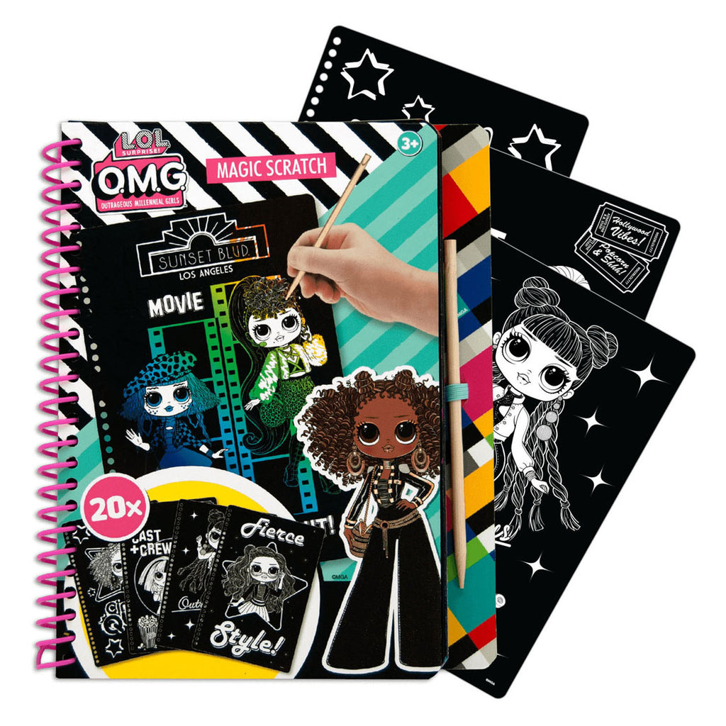 L.O.L. Surprise! Magic Scratch Set met 20 zwarte vellen om te krassen. Inclusief scratch pen. Geschikt voor kinderen vanaf 3 jaar oud.