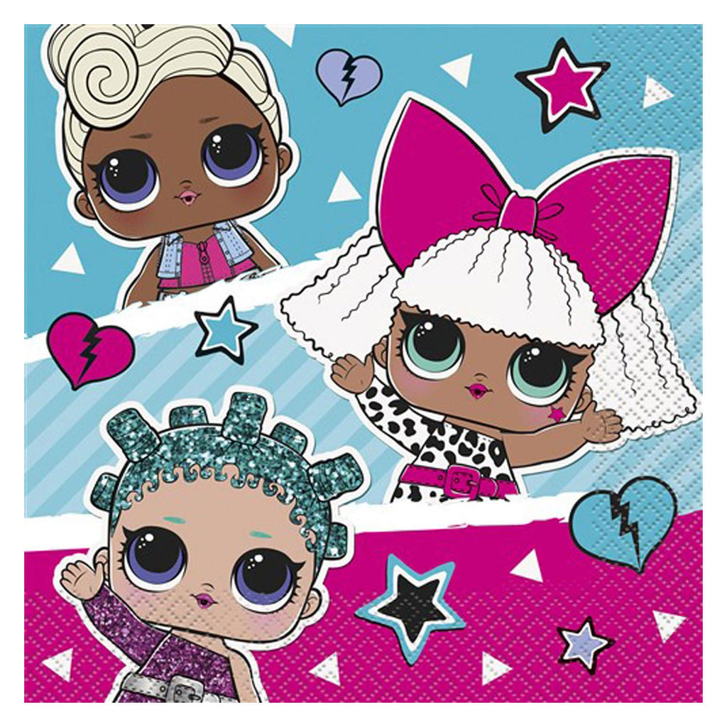 Servetten van L.O.L Surprise. In de verpakking zitten 16 stuks. Leuk voor een L.O.L. kinderfeestje!