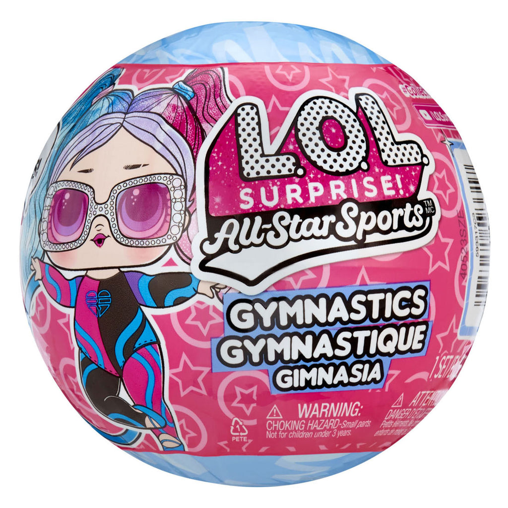 Maak kennis met de L.O.L. Surprise! All Star Sports™ Gymnastics-poppen! Deze minipoppen zijn klaar om te glijden, tuimelen en tollen om hun eigen gymnastiekmedaille te winnen! Open je innovatieve L.O.L. Surprise-bol en verander hem in een perfecte evenwichtsbalk waar je pop haar kunsten op kan vertonen! Klik haar gewoon op haar plek en dan kan ze over de balk glijden en ronddraaien! Je minipop scoort vast een 10 voor haar oefening met perfect gestrekte tenen en gymnastiekaccessoires met veel details zoals een lint, bal of hoepel, net als echte gymnasten! Bovendien zit er een EXCLUSIEVE verzamelkaart bij je pop! Pak 8 verrassingen uit die je pop helpen het podium te bereiken, zoals (1) L.O.L. Surprise! All Star Sports™ Gymnastics-pop; (2) outfit; (3) drinkbeker; (4) medaille; (5) schoenen; (6) accessoire; (7) accessoire; (8) exclusieve verzamelkaart. Verzamel alle 9 L.O.L. Surprise! All Star Sports™ Gymnastics-poppen! Deze LOL Surprise-verzamelpoppen met stijlvol haar, superleuke outfits om aan te trekken en veel accessoires met allerlei details zijn het perfecte speelgoed of de perfecte speelset voor meisjes en jongens van 4 tot 7 jaar en ouder om fantasierijk te spelen! Superleuke poppen als verjaardagscadeau of cadeau voor een speciale gelegenheid met urenlang speelplezier voor broers en zussen, vriendjes of vriendinnetjes!