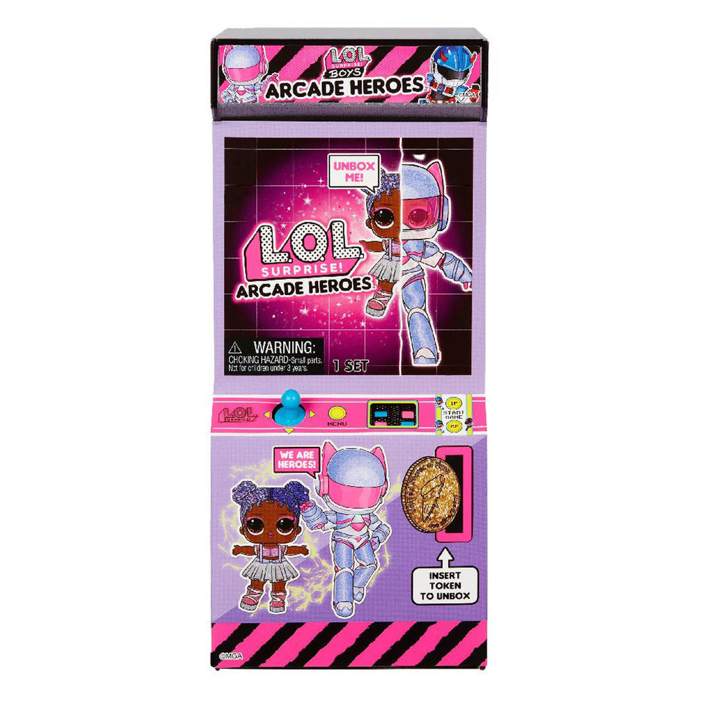 Ga een level omhoog en ontketen de maximale kracht van de L.O.L. Surprise! Boys Arcade Heroes™. Deze megacoole actiefiguren zijn inclusief superheldenpak met een gloednieuwe L.O.L. Surprise!™-jongenspop of een extreem zeldzaam meisjespersonage. Pak 15 verrassingen uit! Steek het muntje in de arcadespel-verpakking om de verpakking te openen en een futuristisch, zesdelig superheldenpak te onthullen. Pak het superheldenpak uit om de L.O.L. Surprise!™-jongenspop eronder te onthullen. Nadat je de pop hebt uitgepakt, kun je hem of haar aankleden met de inbegrepen kleding, schoenen en accessoires. Ze hebben ook een verzamelbare ruilkaart bij zich! Kun jij het extreem zeldzame L.O.L. Surprise!™-meisjespersonage vinden? Alle jongenspoppen zijn anatomisch correct. Verzamel ze alle 6.