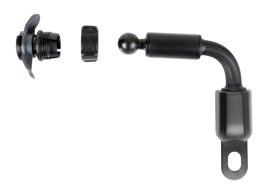 Spiegelbevestiging met flexibele, buigbare arm voor scooters en motoren (maar ook handig op rolstoel of scootmobiel), uitgerust met DUO LOCK connector voor montage van Opti-cases en accessoires. Produktspecificaties: Flexibele arm en 10x14 mm gat. 360 ° instelbaar maakt het gebruik van de accessoires verticaal en horizontaal mogelijk. Let op: houder niet inbegrepen