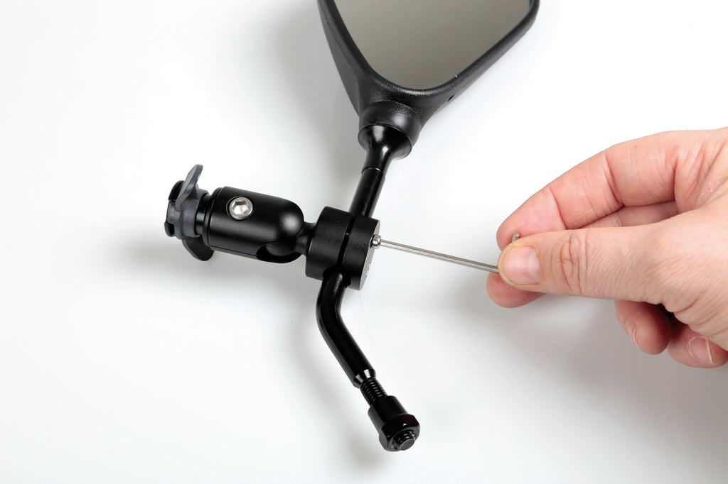 Spiegelbevestiging voor scooters en motoren (maar ook handig op rolstoel of scootmobiel) uitgerust met DUO LOCK connector voor montage van Opti-cases en accessoires. Past ook perfect op windscherm stangetjes van een scooter. Produktspecificaties: 9-14 mm klem. 360° instelbaar Maakt het gebruik van de accessoires verticaal en horizontaal mogelijk. Let op houder niet inbegrepen/exclusief