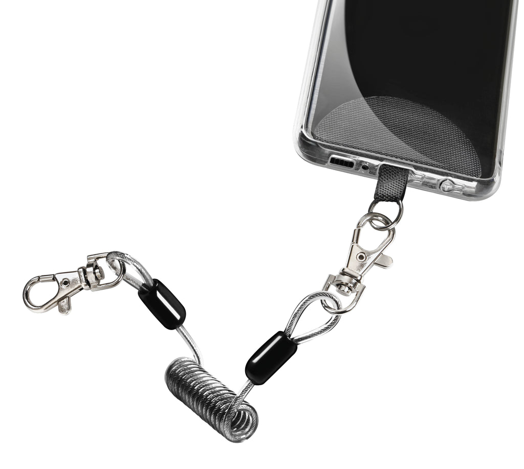Spiraalvormige structuur maakt het mogelijk om de lengte van de kabel naar behoefte te verlengen en terug te brengen naar zijn oorspronkelijke lengte wanneer hij niet in gebruik is. Te bevestigen aan sleutels, telefoon, motor, jas etc. Lengte: 1 meter