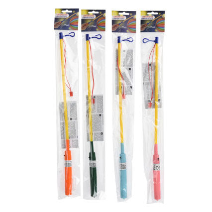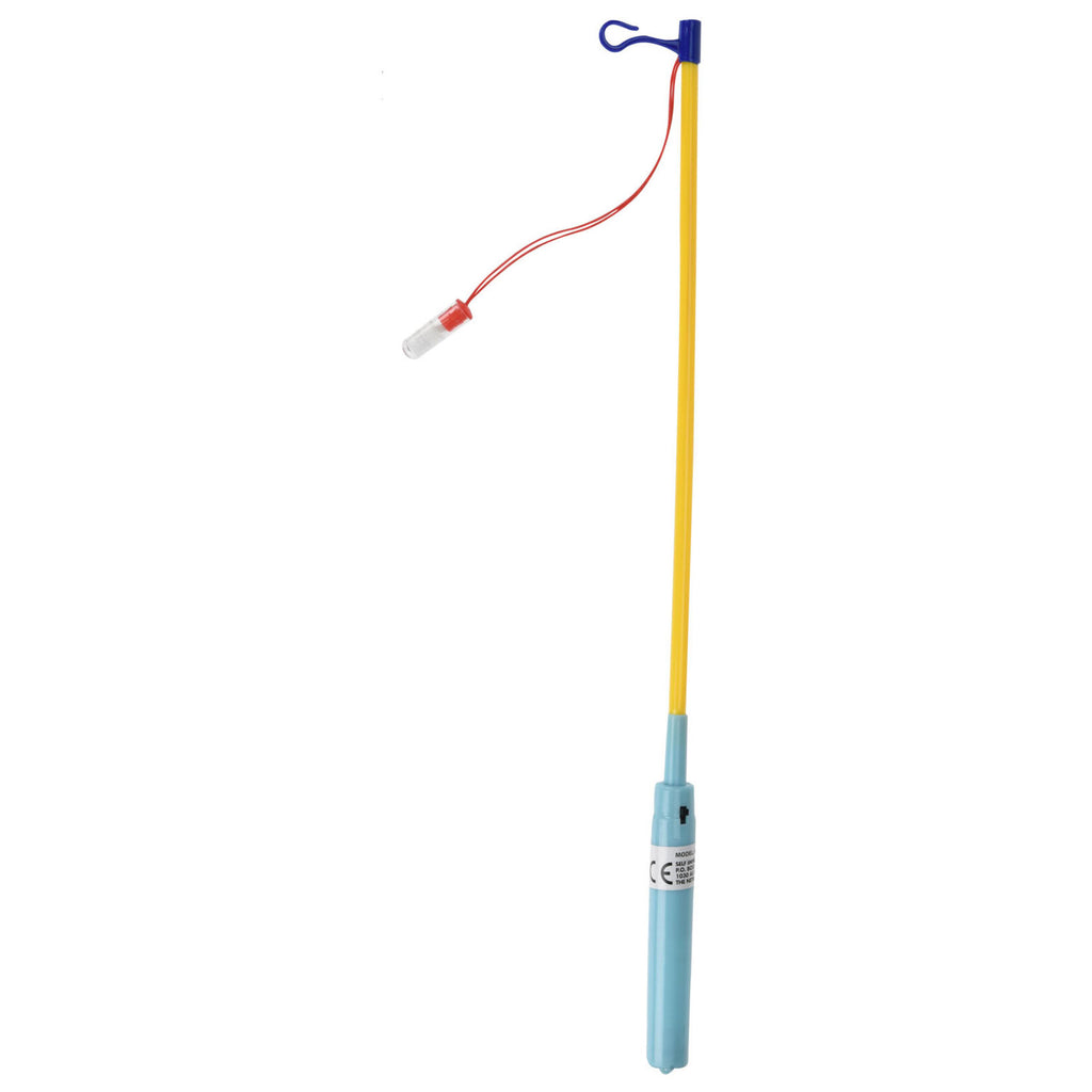 Elektrisch lampionstokje van 50 centimter lang, met haak voor de lampion en een snoer met lampje eraan. Werkt op 1 AAA-batterij (niet inbegrepen). Adviesleeftijd: 4+