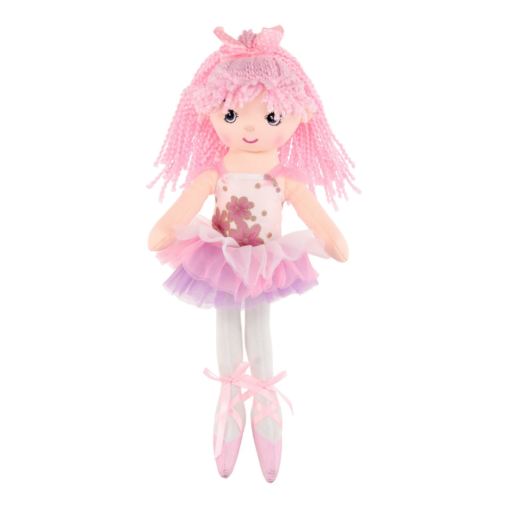Knuffel haar plat, geef haar duizenden kusjes en hou ontzettend veel van haar! De zachte, lichtroze Lappenpop Ballerina is super snoezig! Ze heeft golvend haar in een hoge paardenstaart, draagt een glimmend balletpakje met 3-laagse tutu en prachtige balletschoentjes met strik! De Ballerina Lappenpop heeft een lengte van 40 centimeter.