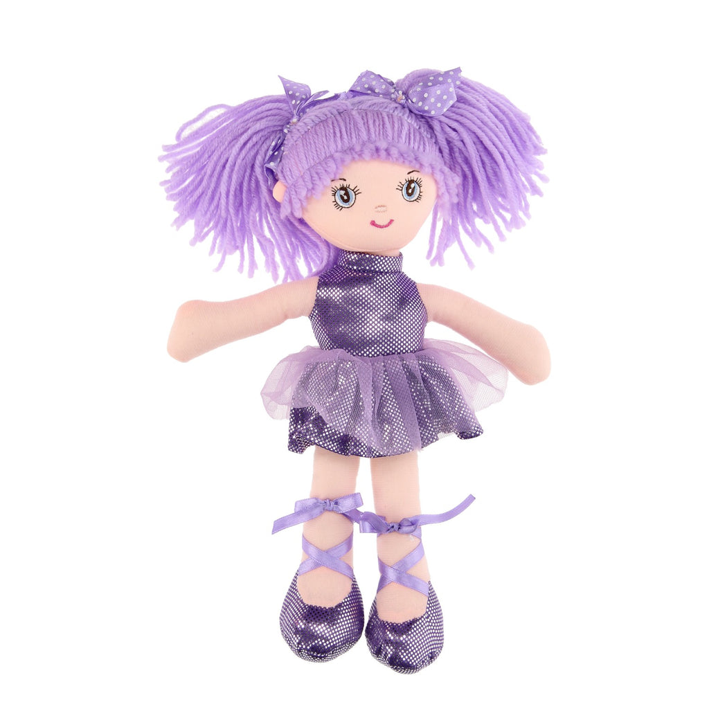 Ik wil met jou knuffelen, dansen en spelen! De paarse Lappenpop Meisje is supermooi en lief: ze draagt 2 staartjes, een glanzend jurkje met tutu en balletschoentjes met strik. De Meisjes Lappenpop heeft een lengte van 30 centimeter.