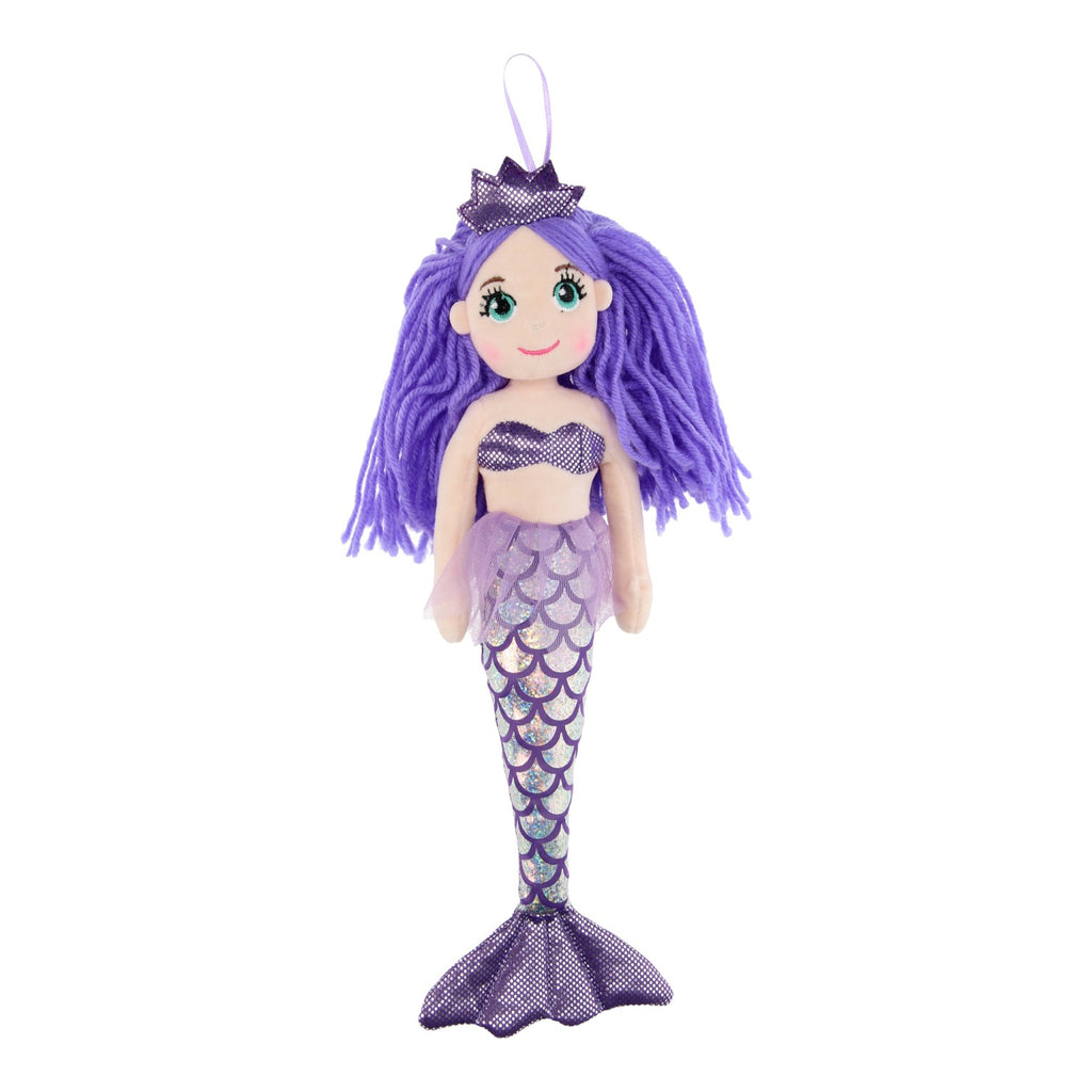Dat slaapt lekker met de zachte paarse Lappenpop Zeemeermin in je armen! En overdag is ze jouw beste vriendin en beleven jullie de mooiste avonturen. Wat is ze mooi met haar glanzende staart, tule rokje en lieve ogen! De paarse Zeemeermin Lappenpop heeft een lengte van 35 centimeter.