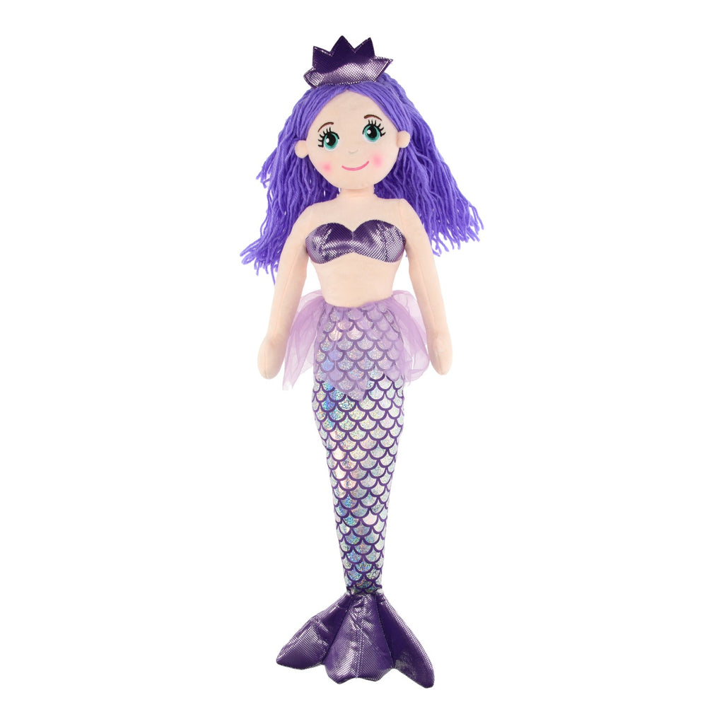 Dat slaapt lekker met de zachte paarse Lappenpop Zeemeermin XL in je armen! En overdag is ze jouw beste vriendin en beleven jullie de mooiste avonturen. Wat is ze mooi met haar glanzende staart, tule rokje en lieve ogen! De paarse XL Zeemeermin Lappenpop heeft een lengte van 65 centimeter.