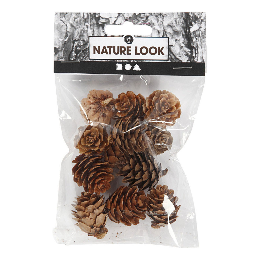 Echte larikskegels voor gebruik in decoraties.Afhankelijk van het oppervlak kunnen de larikskegels worden verlijmd met een lijmpistool of Clear Multi Glue Gel. De kegels kunnen ook rechtstreeks in klei of andere modelleermaterialen worden bevestigd.