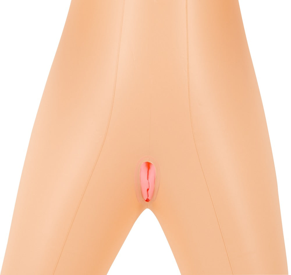 Levensgrote opblaasbare liefdespop Layla van You2Toys in oosterse stijl met een petite figuur en extra grote stevige borsten. Haar mooie gezicht en donkere haar zijn bedrukt. In staande/liggende positie met 3 genotsopeningen (vagina en anus verzegeld bij levering).