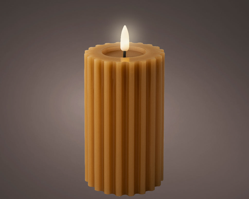 LED Kaars Rib incl. timer - 7.50x14.80cm - Bruin