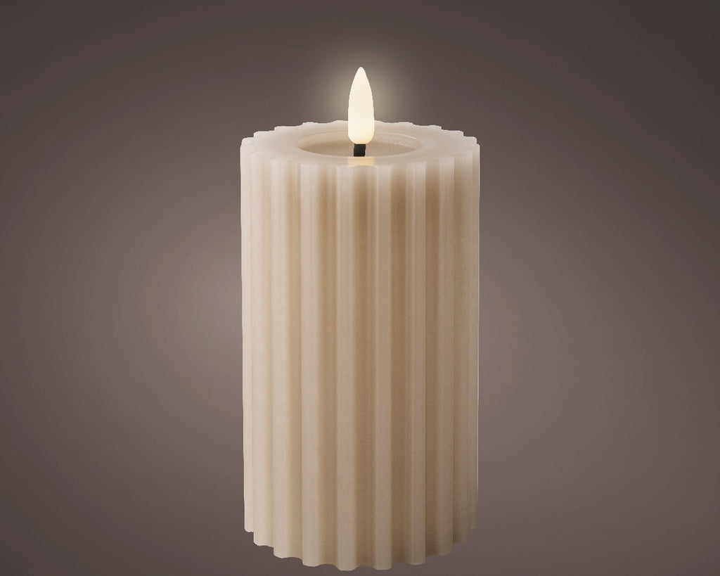 LED Kaars Rib incl. timer - 7.50x14.80cm - Grijs
