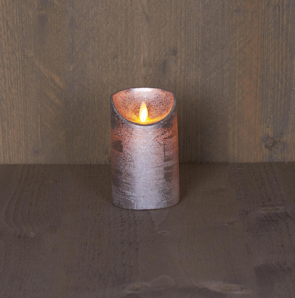 LED Kaars rustiek incl. timer - 7.50x15.00cm - Zilver