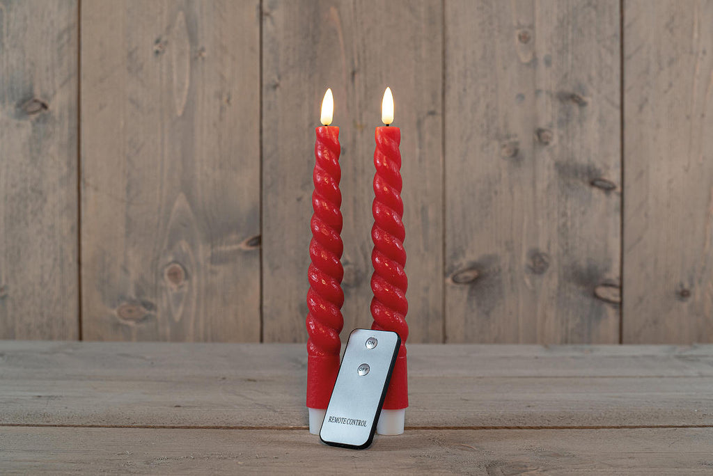 LED Kaars Swirl diner incl. afstandsbedieing - 23cm - Rood