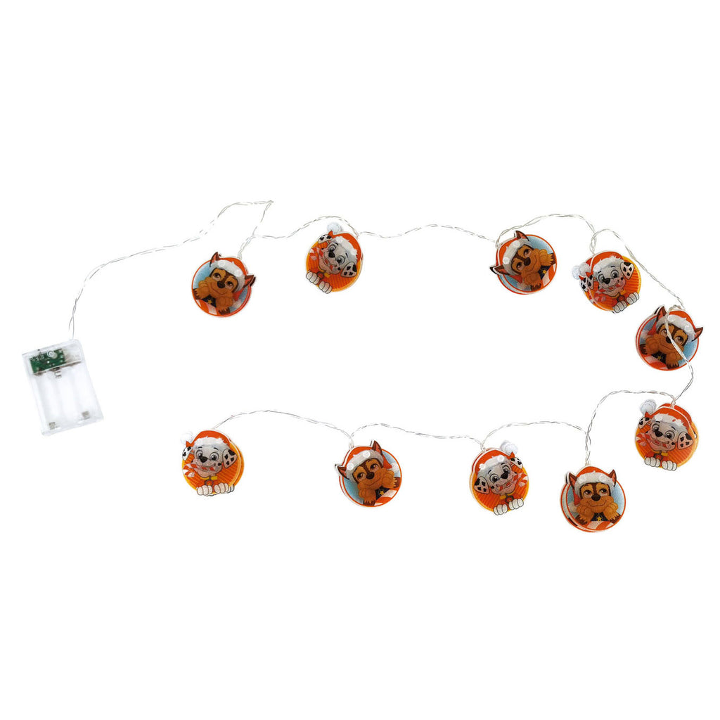 Lampjessnoer met Marshall en Chase van PAW Patrol. Kan zowel aan in warm wit licht of knipperend. Snoer is 165 cm lang en werkt op 3 AA-batterijen (niet inbegrepen).