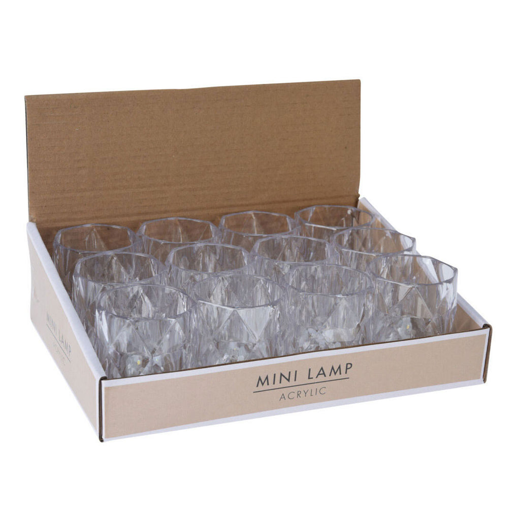 Set van 12 kunststof minilampjes, 6 cm groot. Inclusief batterijen.