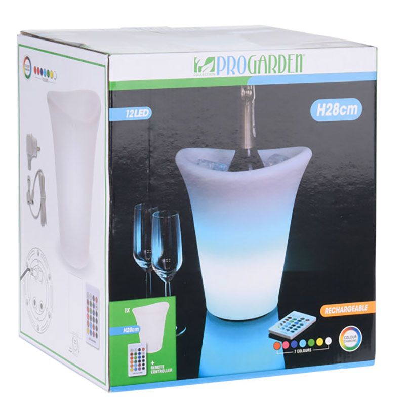 Sfeervolle ijsemmer die je m.b.v. de meegeleverde afstandsbediening van kleur kan laten wisselen. De wijnkoeler is eenvoudig oplaadbaar.