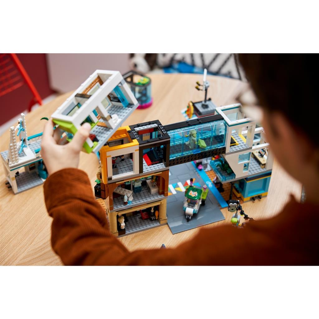 Geef je jonge held de ultieme bouw- en speelervaring met de Lego City 60380 Binnenstad. Deze modulaire speelset bevat een kapperszaak, dierenkliniek, blogstudio, discotheek op het dak, stripboekenwinkel, elektronicawinkel, conciërgekamer en een hotel, plus een park, streetfoodgedeelte, 14 personages en een wegplaat om het model met andere City sets te verbinden. Download de Builder app voor een interactieve bouwervaring. Deze intuïtieve bouwgids bevat tools waarmee kinderen tijdens het bouwen kunnen inzoomen, modellen kunnen draaien en ze vanuit alle hoeken kunnen bekijken. In de app kunnen ze ook hun bouwvoortgang bijhouden en virtuele speelsets ontdekken en opslaan. Geschikt voor kinderen vanaf 8 jaar.