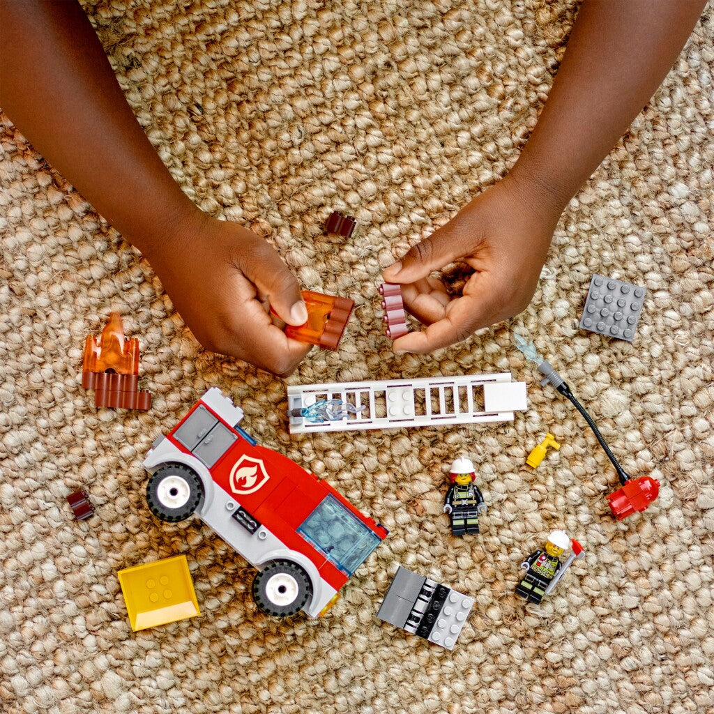 Oh nee! Er is brand en de vlammen reiken steeds hoger! Beleef samen met een brandweerman en heldin Freya McCloud uit de Lego City tv-serie avonturen boordevol brandblusactie. Stap in de geweldige brandweertruck en haast je naar de brand. Laad de apparatuur uit de opbergruimte van de truck en zet de brandkraan aan. Breng de ladder omhoog en help de helden van Lego City om deze brand te blussen!